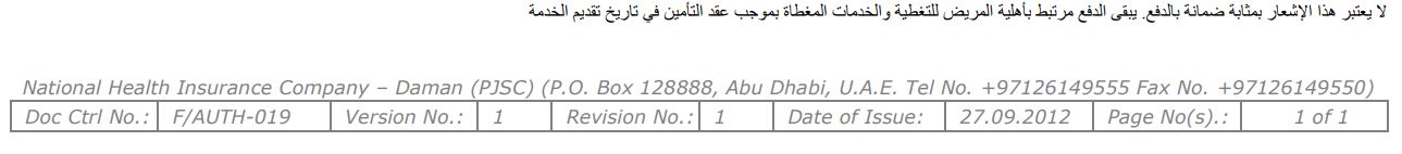 Patient Consent: I, the undersigned hereby authorize the National Health Insurance Company- Daman (PJSC), to obtain all required medical