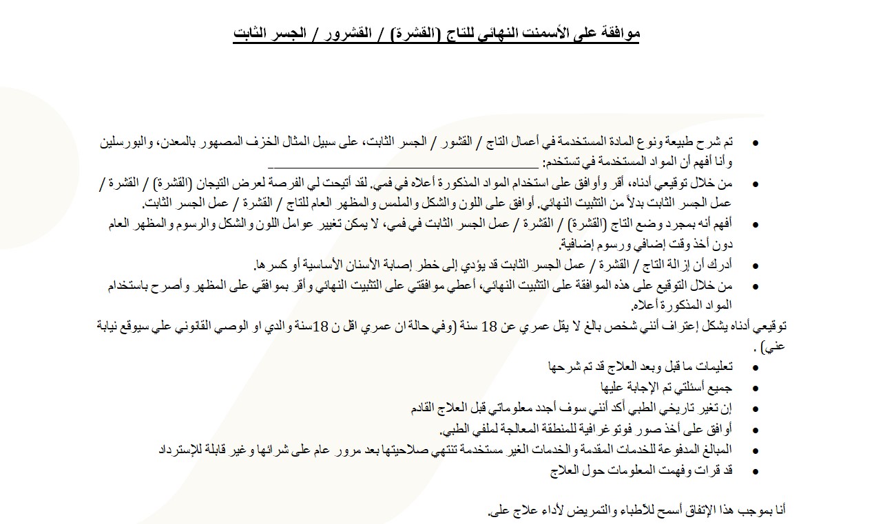 CONSENT FOR FINAL CEMENTATION FOR CROWN(S) / VENEER(S) / FIXED BRIDGE WORK